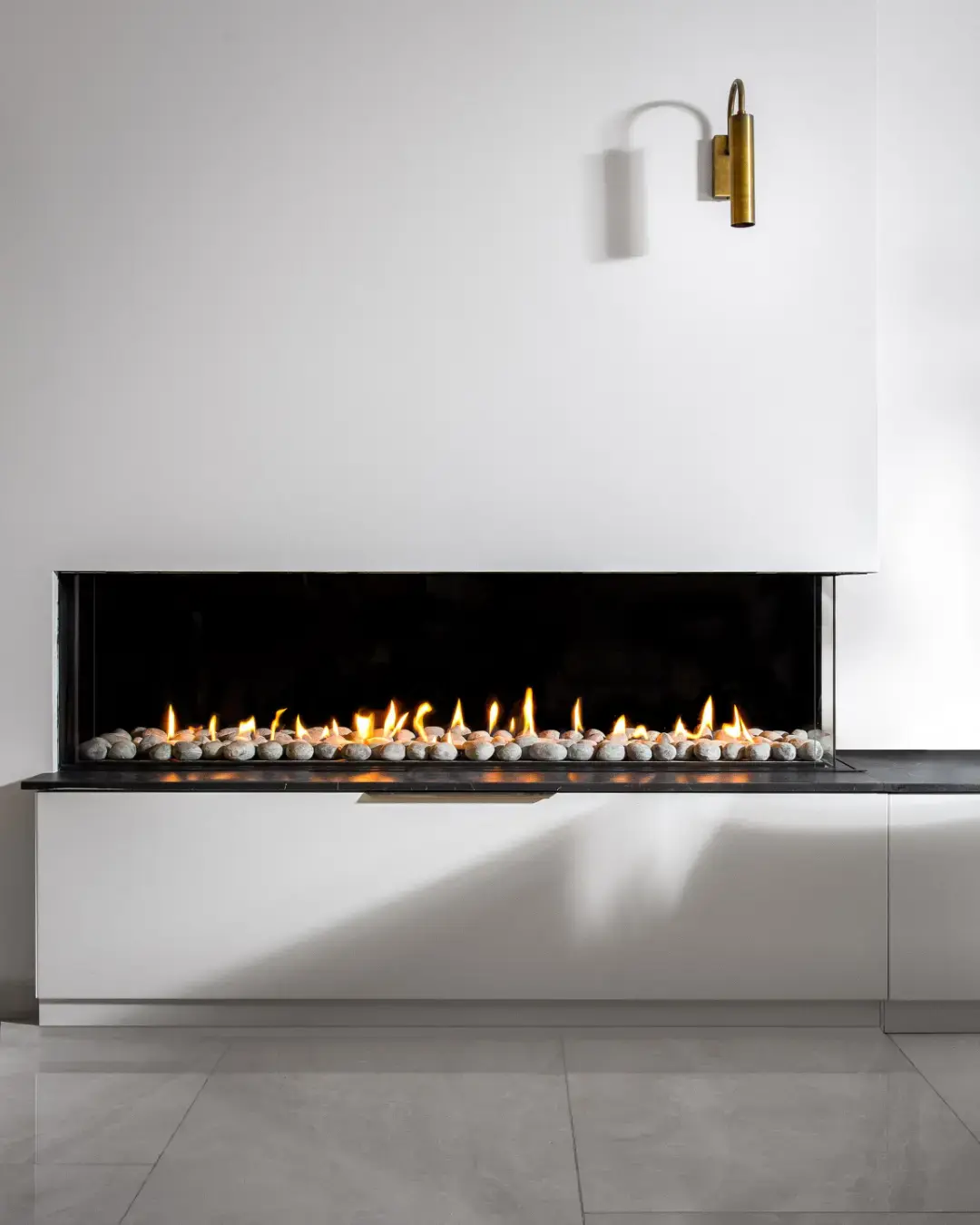Ortal Corner Collection réunit les foyers au gaz d’angle (gauche « LS » ou droite « RS ») les plus aboutis du marché. Idéale pour relier deux espaces ou créer un point focal sur un mur d’angle, la gamme combine une esthétique minimaliste, des flammes hautement réalistes (Signature ou Wilderness), et des options pro adaptées aux projets résidentiels et commerciaux. Les modèles se déclinent en multiples largeurs et trois hauteurs de vitre (standard, H et HH) pour s’adapter à votre architecture et à votre niveau d’impact visuel. Les technologies exclusives d’Ortal — Passive Cool Wall pour installer un téléviseur/œuvre d’art au-dessus, Power Vent pour les parcours d’évacuation complexes et Heat Control System pour redistribuer la chaleur — offrent une grande liberté de design et de performance, avec commandes murales, télécommande et Wi-Fi en option (maison intelligente).
