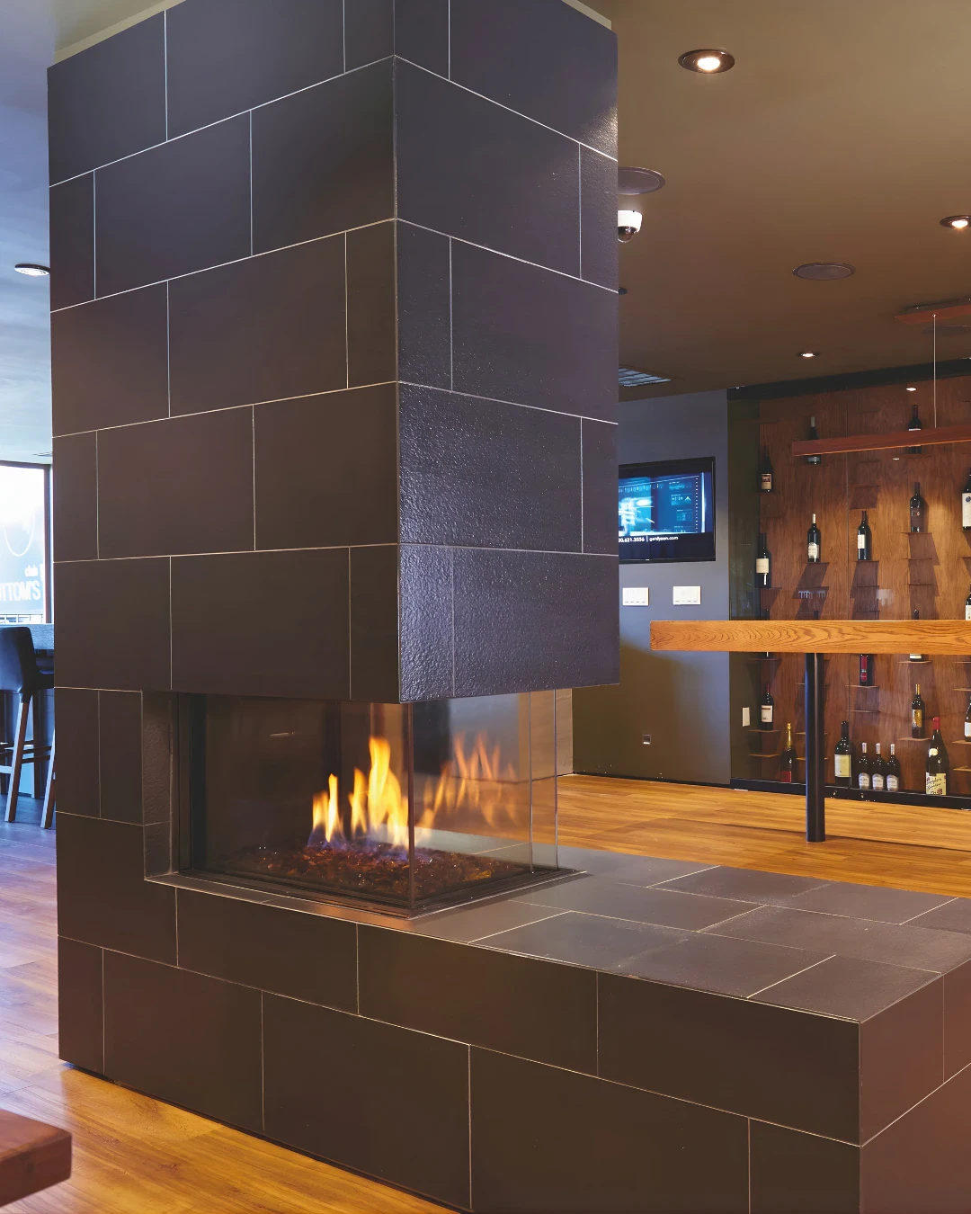 Ortal Space Creator Collection : foyers au gaz « room divider » pour séparer les espaces sans fermer la vue. Passive Cool Wall, barrière double verre/écran, évent 4×6 (SC75) ou 5×8 (SC120/150/200). Ouvertures de 31 9/16″ à 80 1/8″, AFUE jusqu’à 81,4 %, BTU adaptés aux aires ouvertes modernes.
