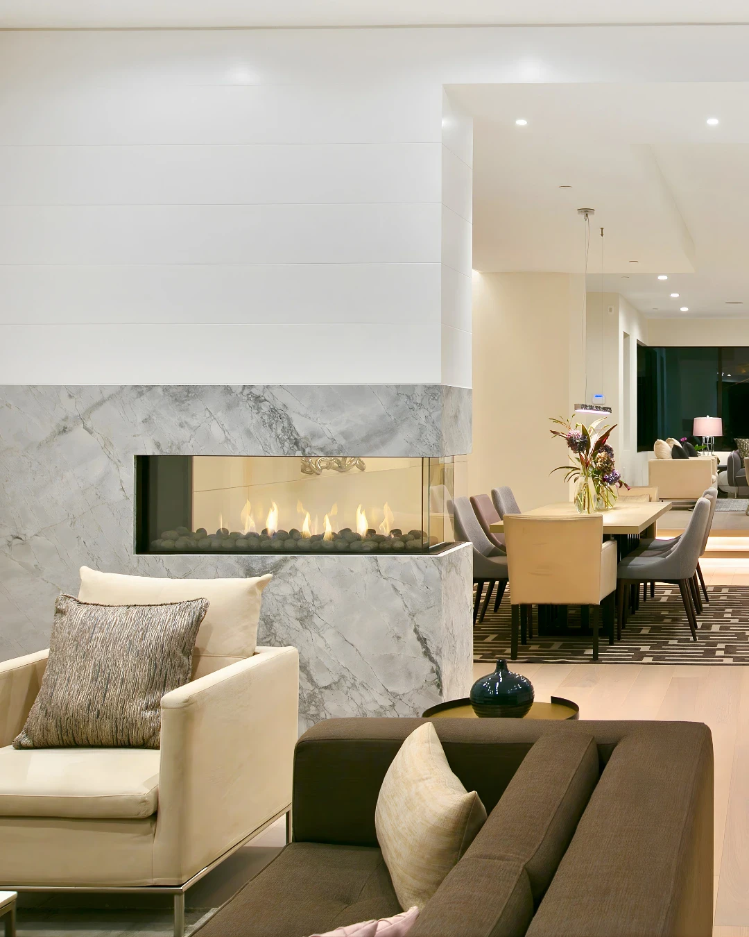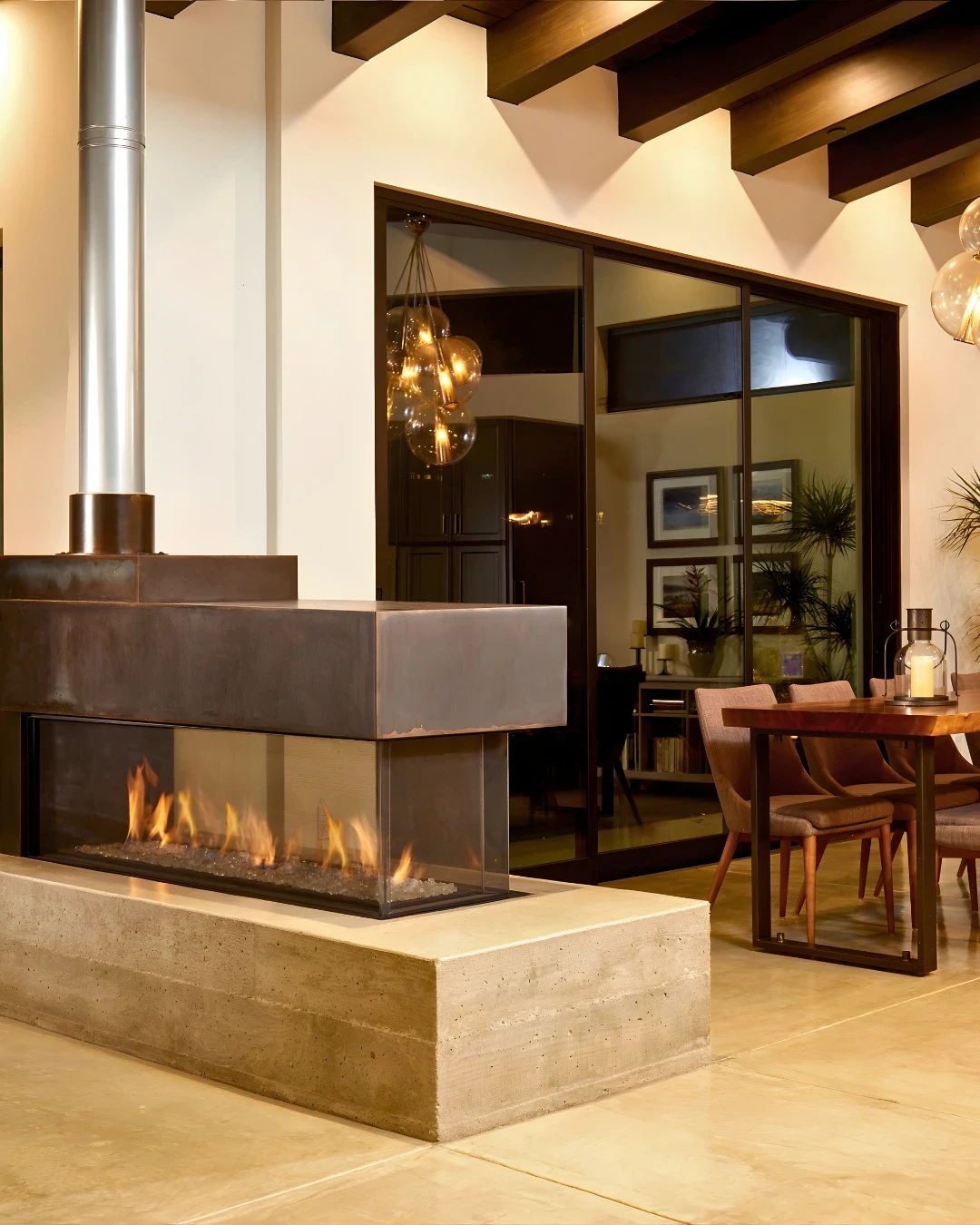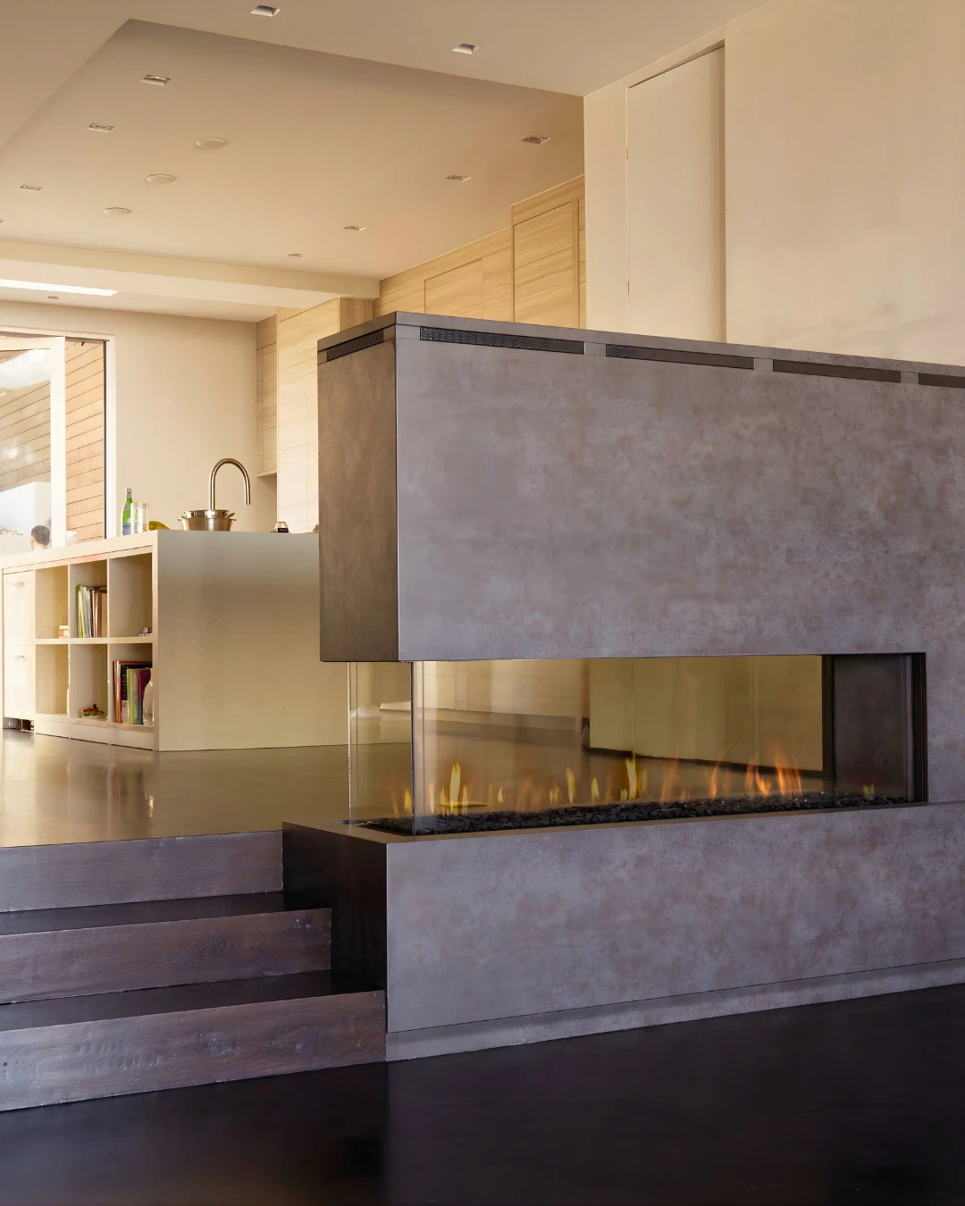 Pensée pour sculpter l’espace avec élégance, la collection Ortal Space Creator transforme un mur de division en ouverture lumineuse — on sépare visuellement les zones tout en conservant la fluidité des volumes. Les modèles SC75, SC120, SC150 et SC200 partagent un design minimaliste à vitrage scellé, une évacuation coaxiale scellée et le choix entre double vitrage ou écran micromaille comme barrière thermique. Avec le système Passive Cool Wall, on peut finir le mur au matériau désiré et même intégrer une TV ou une œuvre au-dessus du foyer, en toute sécurité.
