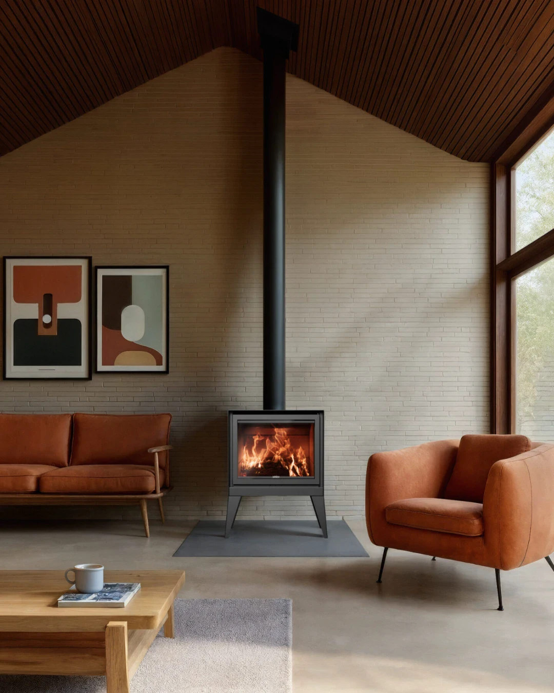 Le Stûv 16-V — poêle à bois sur pattes, pensé pour les intérieurs d’aujourd’hui